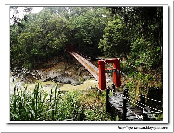 88吊橋下方是石井磯,名稱頗具日式風味。石井磯是指位於河床岩盤上因溪水夾帶砂石,在較軟之砂岩岩盤上刻蝕後,形成許多大小不一的壺穴地形,這些河床內因河流水力沖刷鑿成約二十口大小石井,深不可測,加上連日午後豪雨,岩石濕滑,所以就沒有嘗試輕近溪岸拍攝,留待日後有緣時。